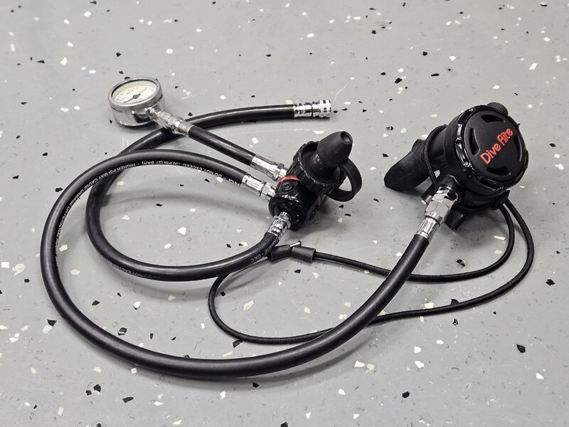 - Dive Rite RG1208 first stage (diaphragm, DIN, rotating 5th-port turret)