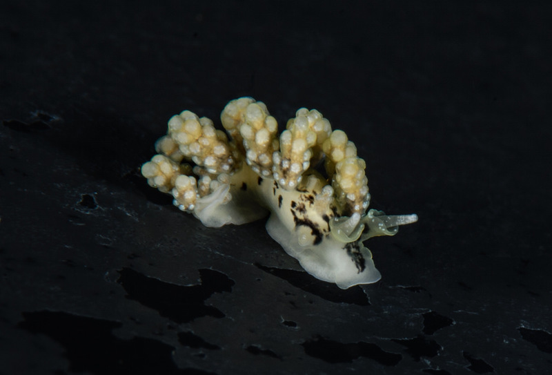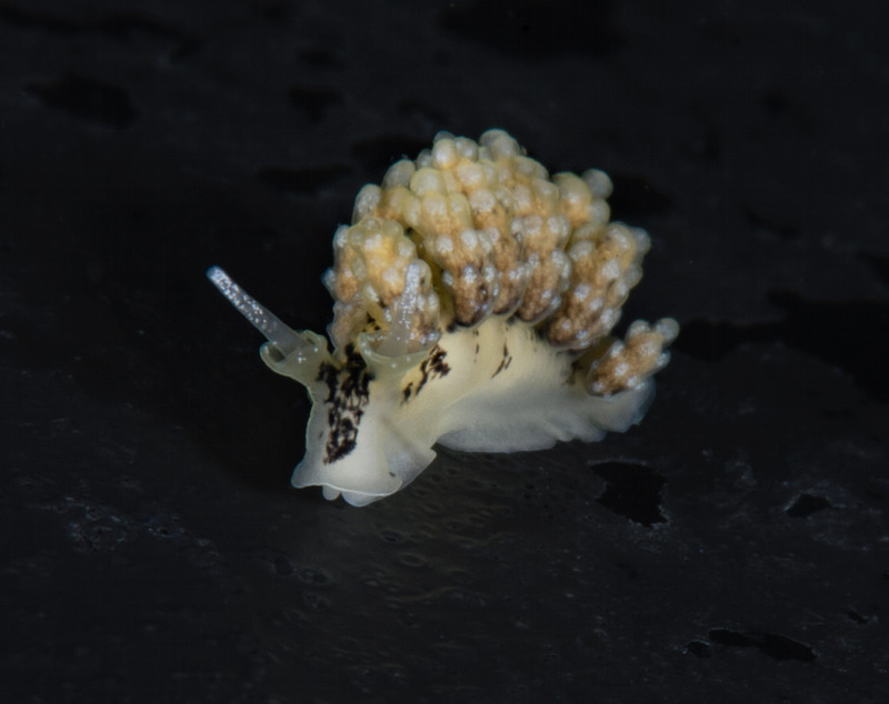 Visibility underwater was as good as I've seen here, up to thirty feet. We had no trouble finding tiny subjects among the moon sponges. By the time we surfaced the wind had picked up and we had to bounce our way home in the choppy seas. If 2018 will allow us to get in the water once a week I might be happy by the end of the year. Maybe.