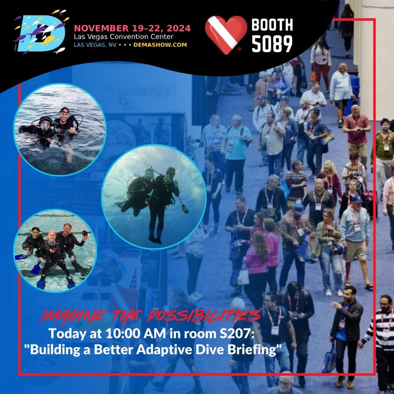 If you're here, don't miss our seminar, "Building a Better Adaptive Dive Briefing," at 10 AM in Room S207. Afterward, stop by Booth 5089 to connect with the Diveheart team! Discover how we're transforming lives through adaptive scuba programs and get the latest updates on our groundbreaking Deep Pool Project. Let’s dive into making a difference together! See you there!