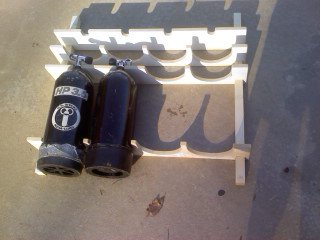 Yours looks nice! I was happy that the necks were avoided because I didn't know if that was a faux pas. That is why I also left the gap. During travel the straps would hold the tanks unless I get rear-ended, where the 1x8 would kick in hopefully. I like your design. I would prefer no play. It may nag on me enough to take a quarter inch off the runners on the "bottom" end.