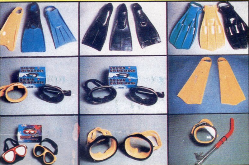 As a retirement project I am researching diving equipment companies around the world still engaged in the business of making traditional fins, masks and snorkels. A recent eBay acquisition was a Korean-made diving mask that came in an old-fashioned cardboard box displaying the manufacturer's products on one side: