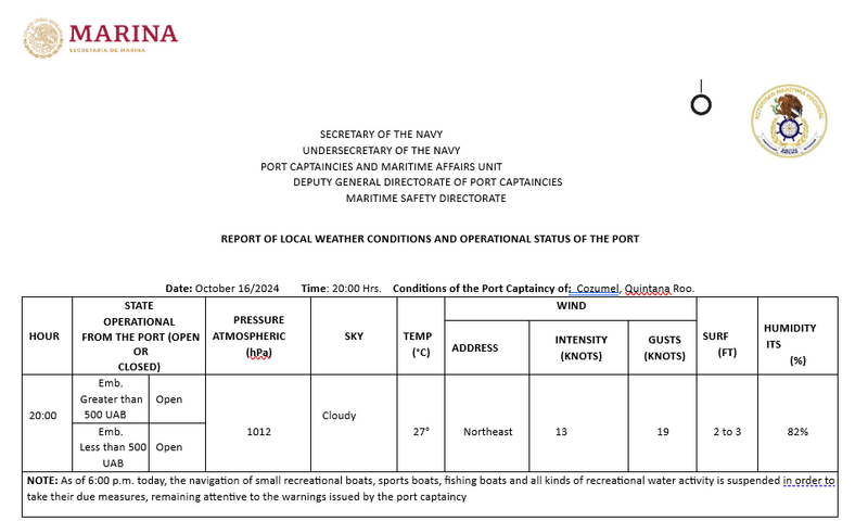 Well the port is closed (all waters around the island) as of 8PM last night.