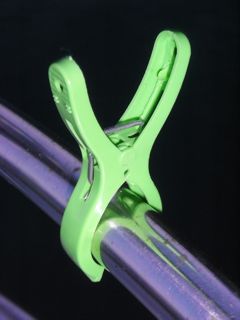 Here in Asia, we have special clothespins that fit around rails, and I always take a few of these on the boat.
