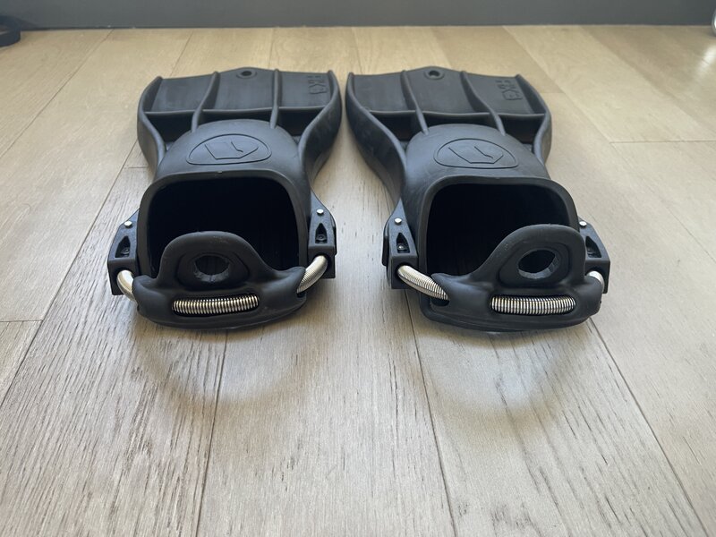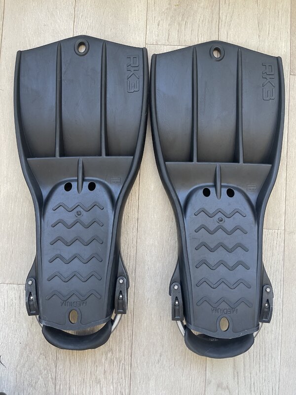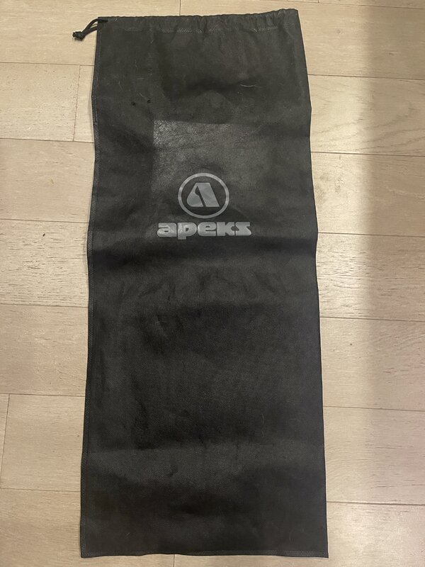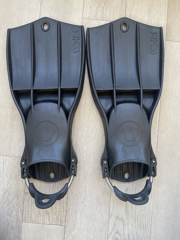 Like new Apeks RK3 medium fins in black. My significant other bought these new, used them for her open water course this summer, then decided she wanted the same pair but in pink so we’re selling these. Includes the Apeks drawstring bag the fins came with. The finger holes in the Apeks spring straps have been removed.
