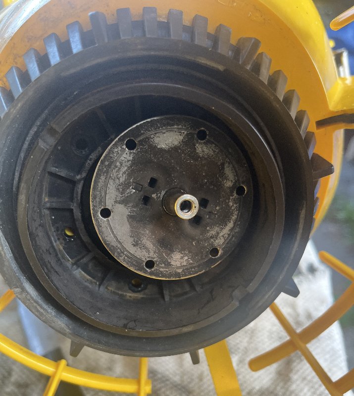 Your pictures don't look like the clutch plate has been removed, the pin should be under the clutch plate, and the shaft doesn't look perpendicular to the center, perhaps you removed the motor housing screws and moved the motor?Hello, replacing wearable items on my AV-1. How do you remove the pin from the motor shaft? I tried giving it a light tap with a punch with no luck.