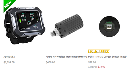 The Apeks DSX is now sold by Dive Gear Express. I don't know if that is a comment on its ultimate success or not. It comes with the oxygen analyzer, the sensor is $79. The price for the MH8A transmitter is high, paying for the brand? Aqua Lung, Shearwater, and Oceanic transmitters are $50-55 less, Oceanic comes with the replacement service post warranty.
