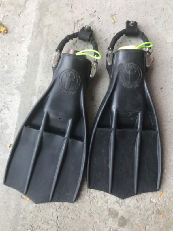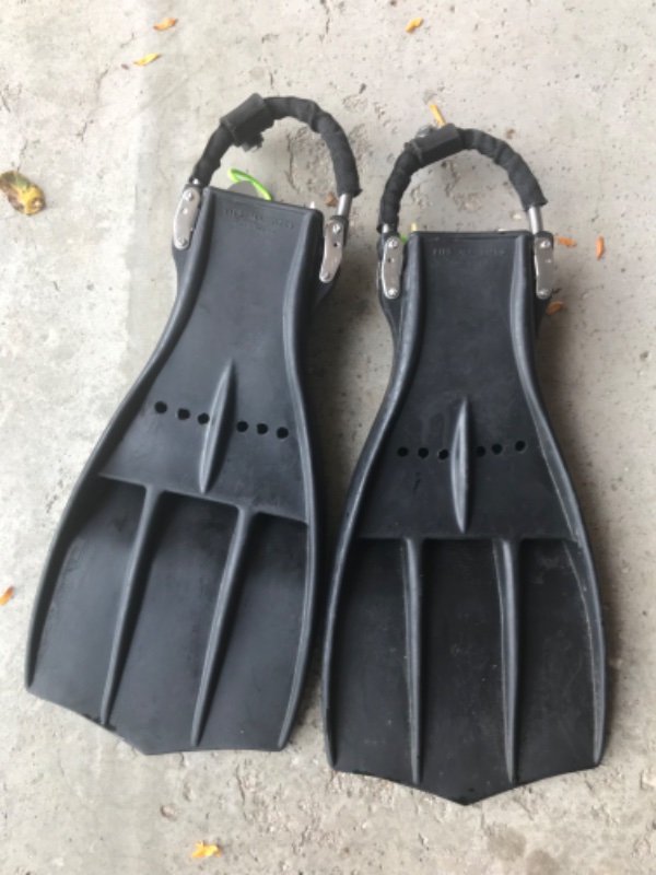 Great, timeless fins with Highland Steel Spring Straps. Wore with a 12 wetsuit boot.