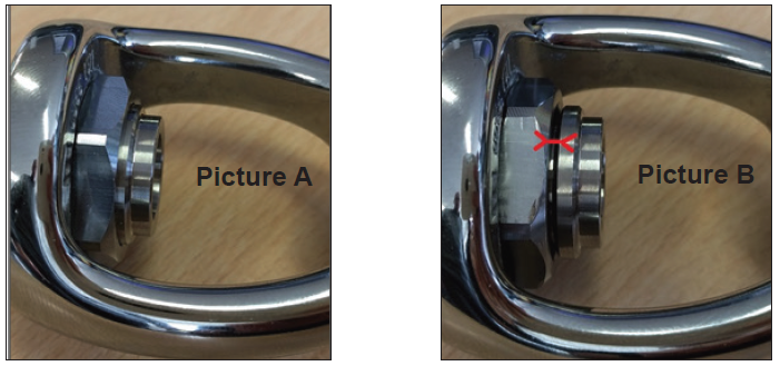 In Picture B you can see the gap in between what's called the shutter crown and the Nut. The Torque settings had been revised to help prevent this. The ACD beign loose isn't' as big an issue as one might think. (I'll come to that)