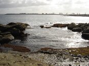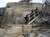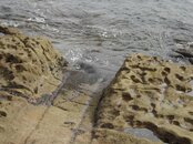Our first dive was at Diamond Bay, which is one of the backbeaches on the Mornington Peninsula. These are usually surf beaches but we'd estimated that the conditions were right and they were great! Viz was about 2m at the start of the dive and I thought 'uh oh' but it cleared up to 10m at the deep part of the dive, and probably averaged around 6m. This dive does not have many critters (though we did see a Rusty catshark and one crayfish!), more a dive to enjoy the landscape that's been formed through waves pounding at it for ages. There are kelp forests and weird rock formations.