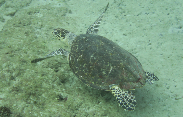 The day started with light sprinkles and ended with bright sun. Seas were 2-3 feet. I was surprised that the water temp was 76 degrees on all 3 dives. Visibility was about 40 feet. There was a moderate north current, some pulling east, off the reef. First dive at Capt Mike's, 2nd at Spadefish Point 3rd at Bonnie's. Saw 6-8 small Reef Sharks, a couple of Nurse Sharks. A couple of Hawksbills, 6-8 Loggerheads, 2 Goliath Grouper, a Southern Ray, and the usual reef fish.