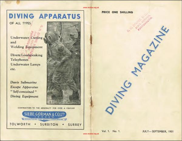 1. Royal Navy Diving Magazine, Volumes 1-16 (July/Sept 1951-December 1970). Volume 1 Number 1 is 5 months older than the first issue of "Skin Diver"! Location: RN Diving Magazines