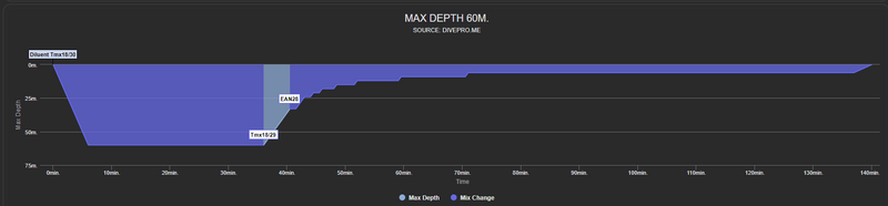 I don't wish to get in to a conversation about the relevance of EAN28, just highlight that the first image shows an ascent on the loop from 60m to 30m (note there is no consumption figure for 18/30), which clearly isn't possible if you have to bailout from max depth. I need to consider other s/w, too many bugs here.Just to say that the MOD for 28% is either