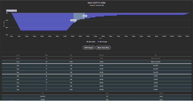 Without the plan settings, it is unclear from the screenshot what is wrong with this plan. Most likely the problem is in the plan settings. please use the special “Share Your Plan”I don't wish to get in to a conversation about the relevance of EAN28, just highlight that the first image shows an ascent on the loop from 60m to 30m (note there is no consumption figure for 18/30), which clearly isn't possible if you have to bailout from max depth. I need to consider other s/w, too many bugs here.View attachment 859289