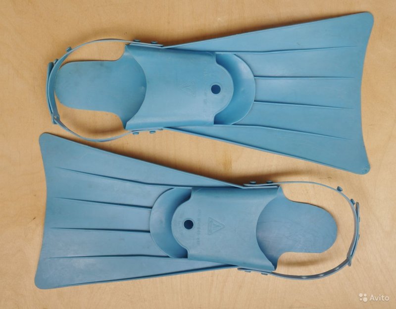 The heel strap comes with the same buttonhole fastening design as the Forelle. One of my Soviet diving books describes the fin thus: "The main advantages of this semi-open and semi-hard plastic-fin from the Leningrad ‘Sports’ plant are low weight and cost. Good hydrodynamic shape and contours have led to successful use of this fin in the early stages of swim training with fins, especially with children. Because of several shortcomings, this fin is unsuitable for competitive swimming." So this anonymous Soviet fin targeted the same users as the Barakuda Forelle.