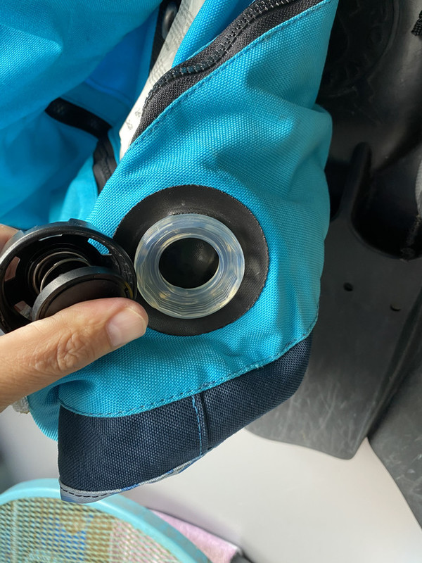 Fresh water rinse with inflation hose in place after the dives, then when I'm home I remove the corrugated inflation hose and rinse again with some diluted Dettol to kill "stuff", then replace hose and store inflated until the next dive.