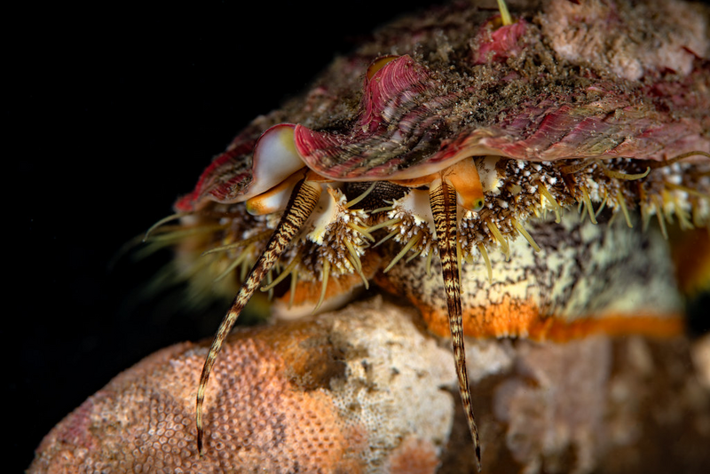 I found a small abalone crawling around. I couldn't resist taking an upward angle shot to see its eyes.