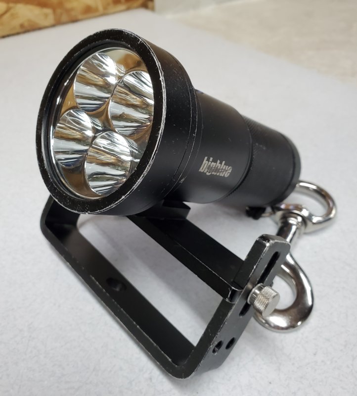 Big Blue TL4000P primary dive light. 4000 lumens, 4 power settings. Includes goodman handle with boltsnap, (was extra) and soft handle. Also knurled set screws for underwater adjustment, li-ion battery and charger. Great primary light, or for this price, a pocket backup without the handle. Retail was around $450. Light is 3 years old with cosmetic scratches. Good working condition with no failures. $225 per light 2 are available. Shipping per buyer.