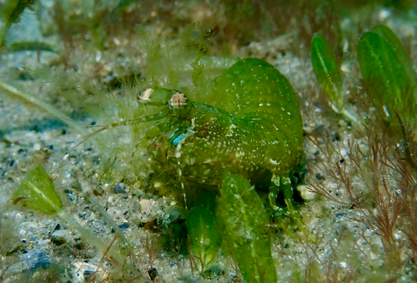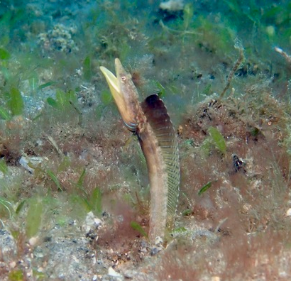 Despite the poor visibility when my mask broke the surface of the water I was immediately on a Spottail Flounder aka Two Spot Flounder (Bothus robinsi). This species has only been recorded 13 times out 176,666 surveys according to REEF database.. Other species of note were a Leopard Sea Robin, a possible Banded Pipefish, a Crested Pipefish, and Banded Blenny. I captured an image of the Banded Blenny with a Tiger Goby next to it, the fish are a little obscured by the spines of a sea urchin but I have included it anyway because its an interesting shot.