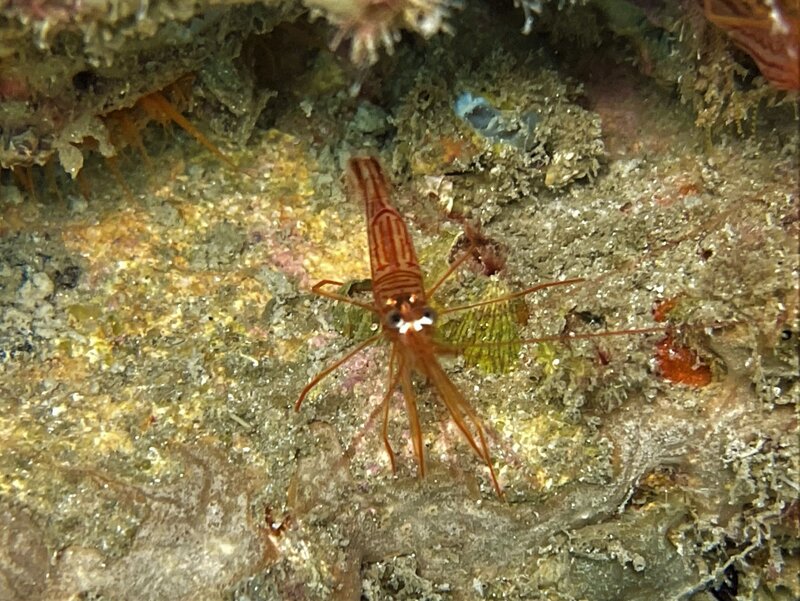 Apart from the usual suspects, Nathalie got a couple of great shots today.. A ciliated mantis shrimp posing for the camera (we usually just catch the tail as it runs into a hole!), and a blue throat pike blenny giving us a display.