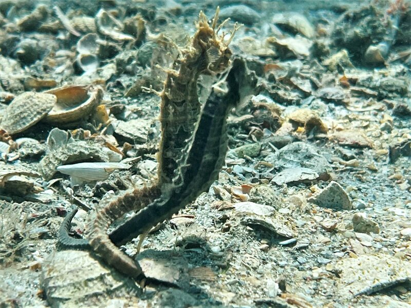 Entered the water on the west for diving at 1025, visibility was 30ft, and sea temp was 75f. Did a REEF fish count 67 species in 65 minutes. Found a pair of seahorses, a Chain Pipefish, a few Shortfin Pipefish, and an anemone I have not identified yet. Respectively, Juvenile Scrawled Cowfish wide angel, seahorse pair, seahorse pair 2, Sharptail Eel wide angle, Atlantic Spadefish wide angle, and unidentified anenome.