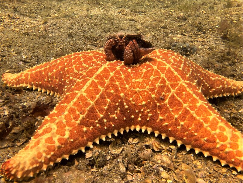 3. what made me actually type this report was I saw the biggest hermit crab I have even seen, it would have dropped that starfish like a bad habit. It was by the boat off the swim area - it had to be 1.5 feet wide.