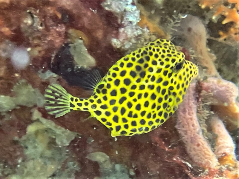 Went to the bridge for diving today. Arrived at 0800 for 0758 high tide. The park was not crowded and blessedly quiet. Entered the water on the westside at 0820. Visibility was a cloudy 30ft, sea temp 86f. The Scaled Sardine bait ball was not surrounding one of the bridge pillars as it had been last week. The Short Bigeye from last week was also not there. Did a REEF fish survey 65 species in 70 minutes. I observed a pair of Frillfins, exact species unknown to me at this time. Checked my pictures against STRI, and the books I have at home, no such luck identifying them. Northern Shortfin Squid is still hanging out in the same location as last week, with 8 Caribbean Reef Squid. On Wednesday and Thursday the tide at the bridge was just to early for me to even use the snorkel trail. So instead I checked out the Mitigation Reef on Singer Island (snorkeling), I have included some videos from there. Respectively, First Frillfin of the pair, first Frillfin of the pair, second Frillfin of the pair, second Frillfin of the pair, second Frillfin of the pair, Spotted Trunkfish, Spotted Trunkfish, Caribbean Reef Squid Video, Northern Shortfin Squid Video, Jack Crevalle at Singer Island Mitigation Reef, Green Sea Turtle at Singer Island Mitigation Reef.