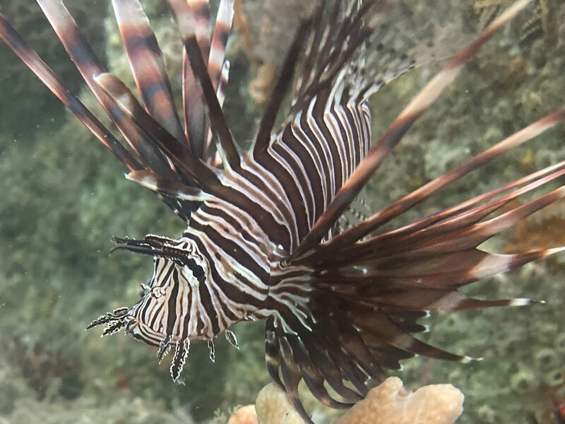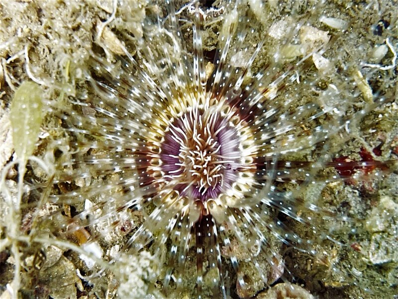 Went to the bridge for diving today. Arrived at 0715 for a 0756 high tide. Used my 5mm instead of 3mm. Sea temp was 76f. Visibility was 30ft with a little bit of green mixed in on the west side, 45ft and blue directly south of the beach. There were a few more people today than yesterday, but nobody over on the westside. Like yesterday, I did not encounter another person until exiting the water near the staircase on the eastside. Did a REEF fish survey, 61 species in 65 minutes. Nothing extraordinary to report today. I did observe a Shortnose Batfish today, a species that occurs with far less regularity than more common Polka-dot Batfish. I think the Shortnose Batfish is mistaken quite often for a Longnose Batfish. Certainly when compared to the Polka-dot Batfish, the Shorthnose Batfish has a much longer nose, and thus the confusion. However the Longnose Batfish has a longer nose the than the Shortnose Batfish especially when measured against the size of its body. The Shortnose Batfish has a dark band, light band, dark band color pattern on the caudal fin. The Longnose Batfish only has a one dark band at the margin. The image below is clearly a Shortnose Batfish. Respectively, Fringed Filefish, Honeycomb Cowfish, Juvenile Spotfin Butterflyfish, Sea Cucumber (species unknown to me), and Shortnose Batfish.