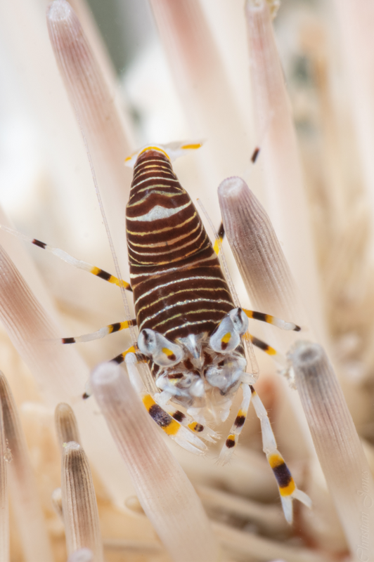 Bumblebee shrimp on a white sea urchin