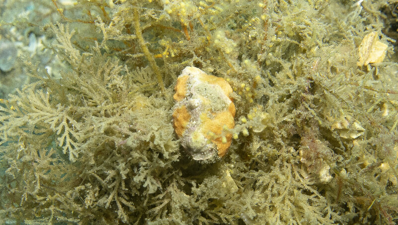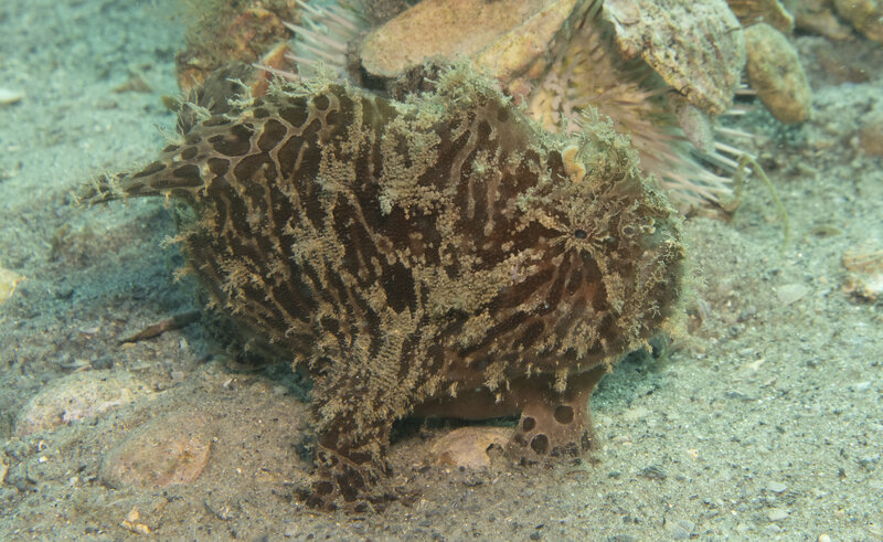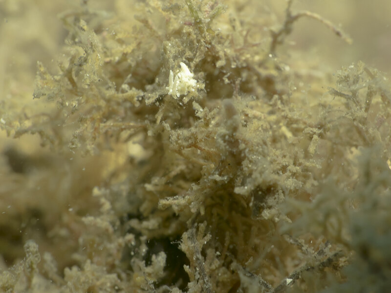 Entered on the west side at 0710. Stayed to the west, making a circuit around the western part of the snorkel trail, and then heading further to the west close to the boat channel. Not searching for anything in particular. Did a REEF fish survey of 50 species in 65 minutes. Observed one the best camouflaged Frogfish I have ever seen, even when looking at the image I have a hard time distinguishing it from the Brown Bryozoan next to it. Observed a Pink and White Dwarf Frogfish, Lined Seahorse, and a concentration of five nudibranchs in one small hydroid. Respectively, Nudibranch Genus Doto, Dwarf Frogfish, Striated Frogfish, Tiny Tunicates (species unknown) and close up of Zig Zag Scallop.