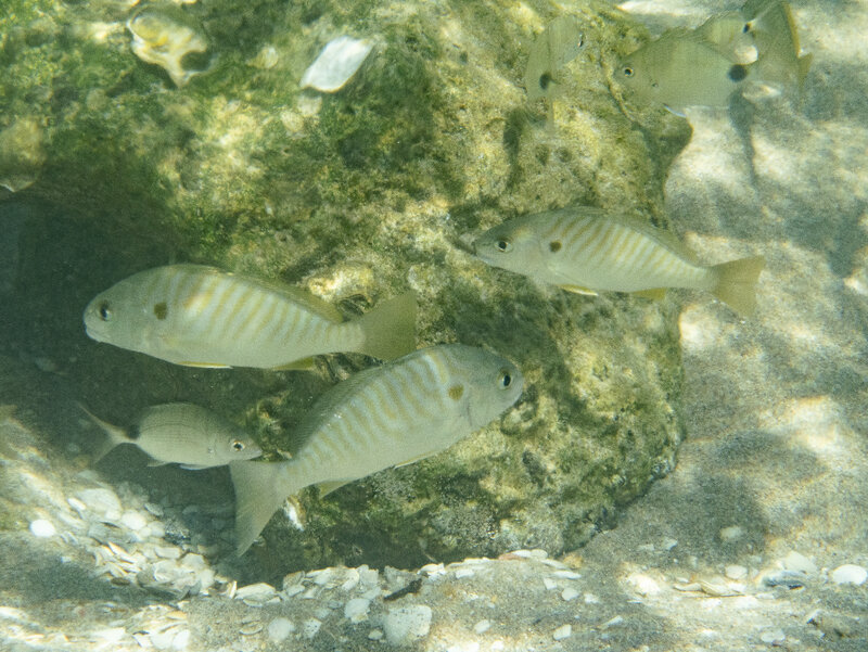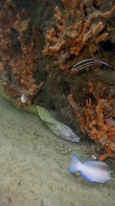 I reported that high tide was 0834 yesterday, it was 0804. Today it was 0844. Went to the bridge for diving today. Arrived at 0730. Sea temp 84f, and visibility 30ft. No jellyfish today. The park was uncrowded, about the same as yesterday.