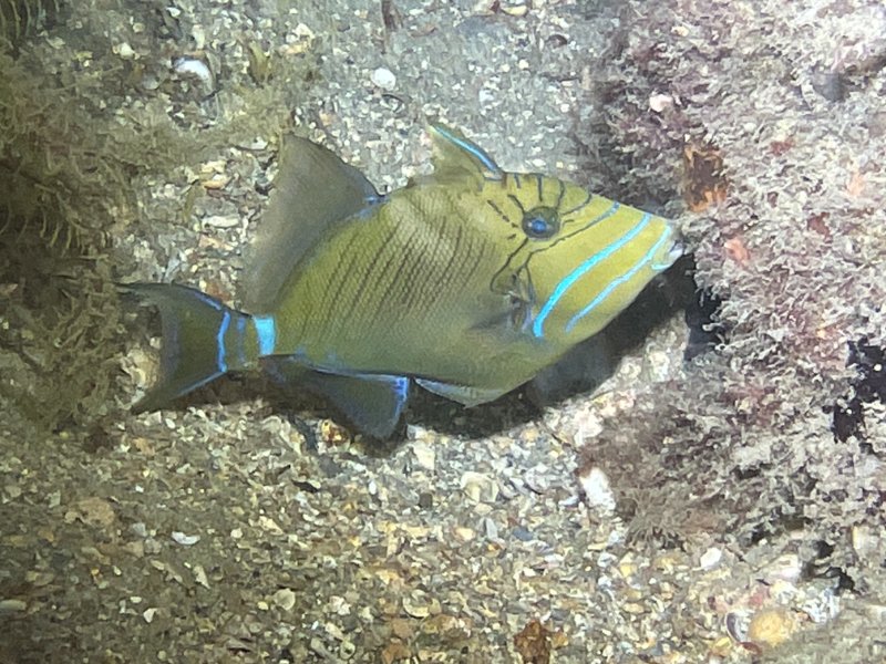 ETA: There was a shrimp of some sort in the burrow with the goby, but it didn't venture out once I was in position with. my camera. The Reef Fish ID book mentions that they "live communally with snapping shrimp", so it was neat to see that behavior.