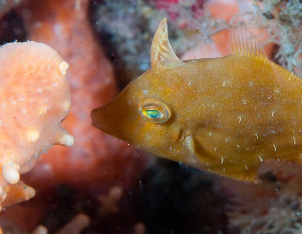 Saw a weird filefish that looked like a dark brown leaf.