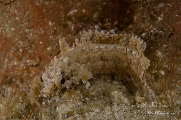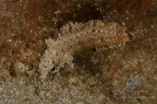Ran across this guy with his unopened bivalve. He tried to hide it from me, but I swam around to the other side of the bottle on him.