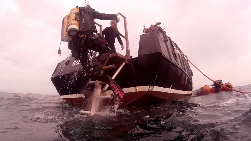 These ladders used to be commonplace in the U.K. but once people started diving twins or rebreather boat operators with lifts appeared on the scene. Within a few years nearly every charter had a lift or they wouldn’t get bookings.