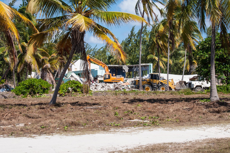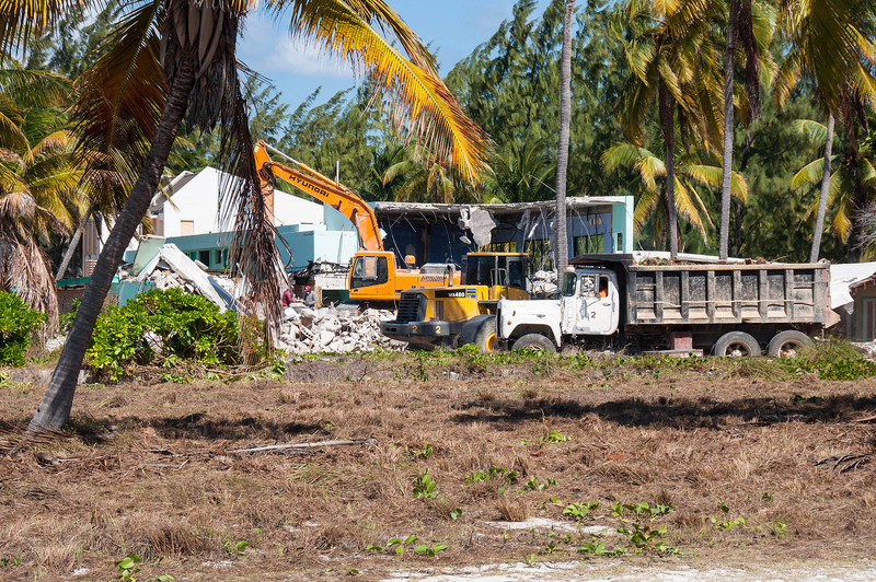 Apparently it was the Royal Visit to Brac tomorrow that finally spurred the demolition of the abandoned Divi Tiara resort.