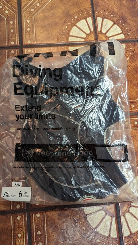 Never touch waterr, still in the bag. Composed of two smooth and elastic neoprene qualities. 5mm neoprene in neck and face area and 6mm neoprene in head area. Finished with 0.5mm nylon jersey from both sides for easier wear. Vented to allow air to escape. A very comfortable and easy to put on / take off diving hood.