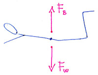 Right.Tell me if I'm wrong here ... at the end of the day, the only possible trim-stable (and at the same time granting trim and buoyancy equilibrium) configuration is the one where both forces have equal magnitude and are vertically aligned in such two points like here (i.e. Fb=buoyancy applied on the upper point and Fw=weight down):
