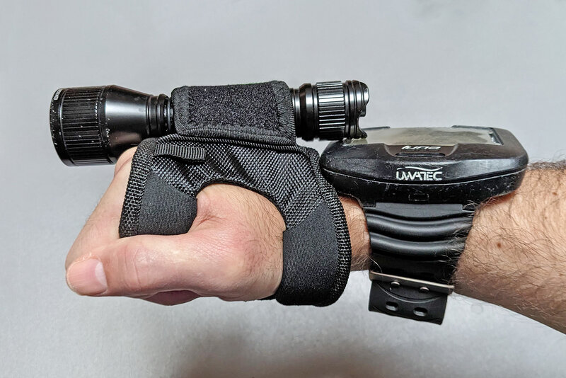 Normally, you can't wear a dive light on the same hand as your dive computer, because the light is so long it bumps into the computer. But this light mounts the battery sideways, so it's incredibly short. I tried it on a cheap action camera hand grip I had lying around. And it's great; it doesn't bump into the computer at all. The knob control for the wrist light is easy to reach with the other hand, and can be mounted either orientation so it works for lefties as well. And every other 18650-size wrist light I own only has a white spot. By turning the battery sideways, this finds room for two red LEDs as well.