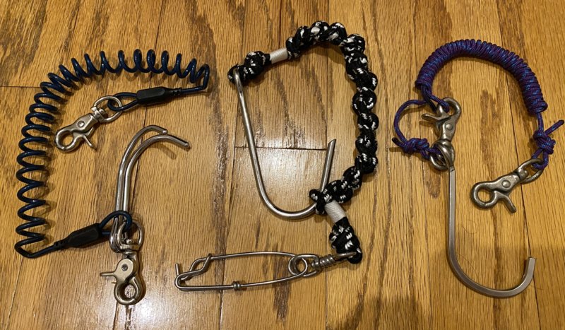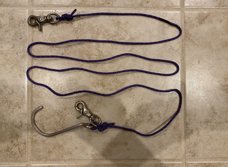 After reading your stories about reef hooks in the madlives, I assembled my own for my trip. A durable steel double hook that would not break and 4 feet of paracord (rainbow, for pride!) and a clip-biner on the other end.