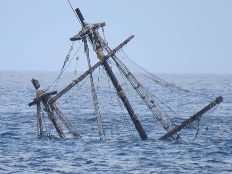 I saw a picture of it this morning on Facebook. It looks to be sunk down to about half way up the mast and canted at an angle, bow down. It's not in the harbor but offshore a ways though not out past the wall. I couldn't tell where, though.I wonder if it was insured?