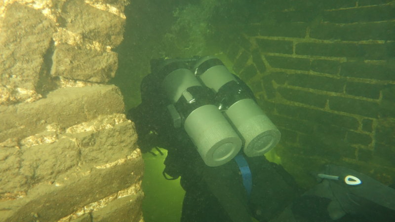 On Saturday morning, I departed from Beijing and took a long ride to Qianxi county of Hebei province. In 1975, the government built dam there with one village which is part of a hundred-year old Great Wall that's under water. “ Under water Great Wall” is a very unique place, but in the middle of nowhere so you have to be super careful as no insurance will help if something happens. Last autumn, 2 exercise technical divers lost their lives in the same place with the reason still unknown. Since the water temperature at the bottom is only 5°C, I used my dry suit, thick hood and gloves.