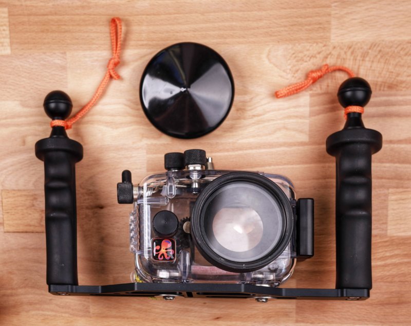 This is a full package ready to dive and produce quality underwater photography and videography. It includes camera (Canon S100) with 2 batteries and charger, Ikelite UltraCompact housing for the Canon S100 enabling full access to the commands, aluminum tray with 1" ball heads for connecting lights and arms. This set up has been in about 30 dives and provides very high quality photos and videos. Canon S100 enables custom white balance with just 1 button (custom) which guarantees great colors underwater. The Ikelite flat port has a 67mm filter thread allowing for a red filter (not included in this package). The housing and o-rings have been cleaned and serviced after every dive.