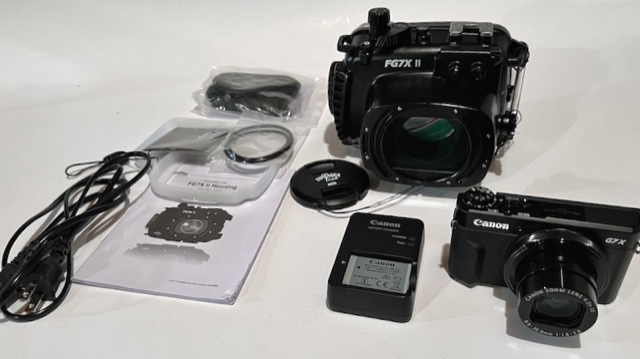 Canon G7X II Camera, two Canon batteries and charger, Fantasea FG7X II housing - $775.00 shipped.