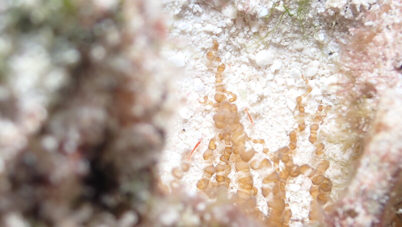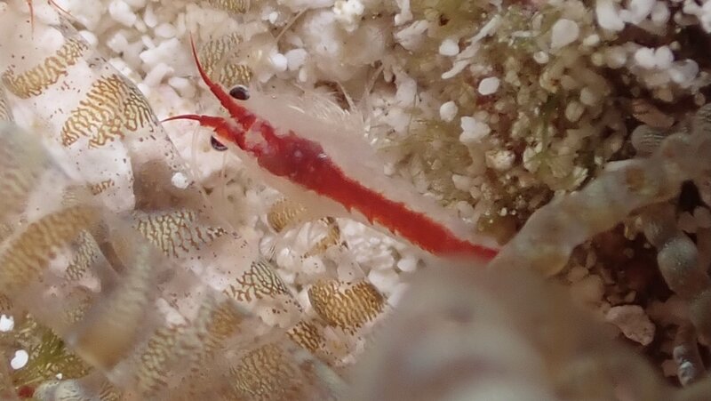 We saw eagle rays and turtles on several days, and even though I find it hard to believe, I encountered several new-to-me critters again. Almost every trip to Cozumel I find something new-to-me. I think my favorite this time were anemone mysids. They are found in corkscrew anemones and are super tiny clear shrimp with red ‘insides’ and black eyes. The red part looks like bits of red thread. I’ll post a few pics to show what I mean. I’m always checking corkscrew anemones for pistol shrimp (snapping shrimp) and Peterson shrimp, so these were a really fun find for me.