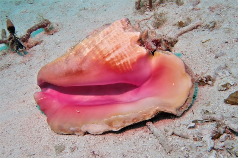 Was the conch removed by a person, i.e. hole in the top of the shell, or was it something else? Rarely see such clean shellsOne of the prettiest conch shells I've seen lately - yesterday at La Mesa (this is the original unadjusted color). And it was over a foot long. We all thought about taking it, but that's a legal no-no here.