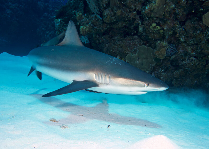 Pre-CoVid (May 2019) trip .. a blacktip on a thursday morning on Little Cayman, hanging around the divers, hoping for a lionfish hangout.