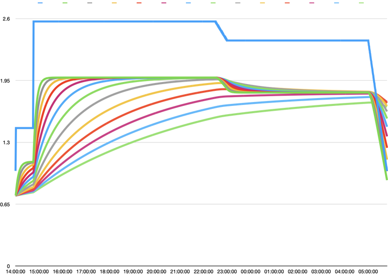 Would it be possible on your graph to extend the time to see when the N² tension of the different compartments are again at 0.79