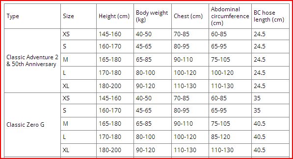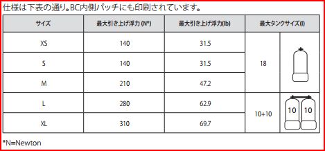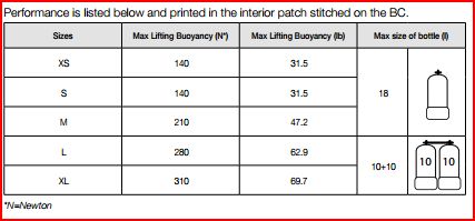 However, in the Japanese (and US-site English also) "classic unlimited/classic stabilizing jacket section of the BCD manual, it states that the buoyancy/lift for both the XS and S size is the same - 140N, 31.5lbs, and maximum tank size 18L.