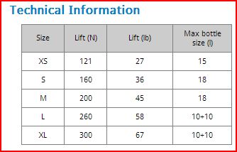 To slightly confuse matters, the US-American website (SCUBAPRO - CLASSIC) contradicts the US-American BCD manual. On the website it says the XS size has a max lift capacity of only 121N, 27lbs, max tank size 15L, but the BCD manual of course says XS is 140N, 31.5lbs, max tank 18L.