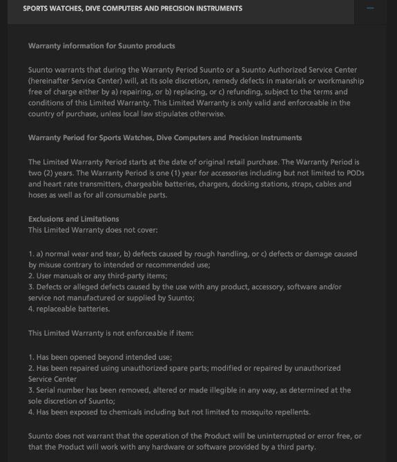 But you might want to run your genius lay interpretation of "does not cover defects or alleged defects cause by the use with any product, accessory, software and/or service not manufactured or supplied by Suunto" as meaning "using 3rd party programs is restricted and is grounds to withdraw your warranty" past Legal. I'm sure your in-house counsel could use the laugh.
